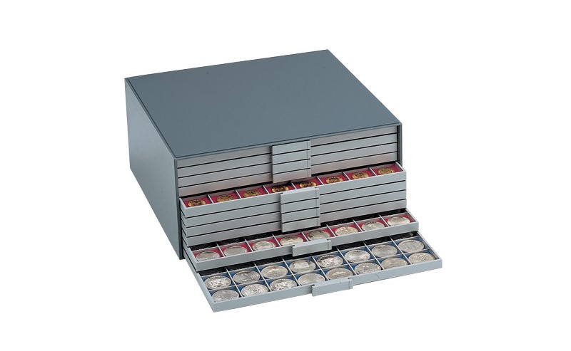 - Le médailler et écrin individuel : si vos pièces sont très anciennes, fragiles ou avec une patine détériorée, un simple classeur numismatique est à déconseiller. En effet, les feuilles plastiques et la pression du classeur risquent d’abîmer un peu plus ces dernières. Optez pour un médaillier. Avec ses tiroirs et ses casiers plus épais, vos monnaies seront bien protégées.